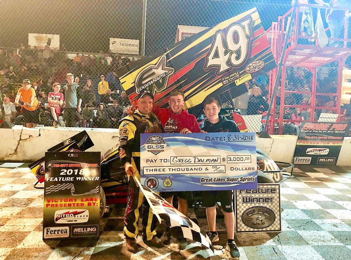 Auburn, MI – Gregg Dalman (Bellevue, MI) won his 2nd feature this season in a photo finish with “Mad” Max Stambaugh (Elida, OH) tonight and secured a 2nd place finish in the Great Lakes Super Sprints Points Championship.