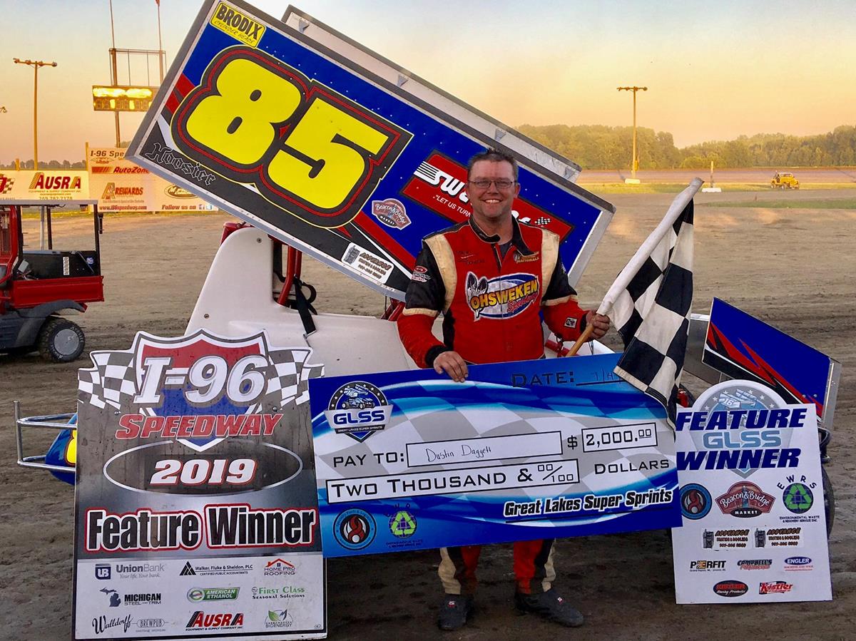 Lafayette, LA - After fighting car demons since the first race of the season, Dustin Daggett (Portland, MI) wins his first feature of the 2019 season over a stout field of cars in an early Sunday evening race at I-96 Speedway.