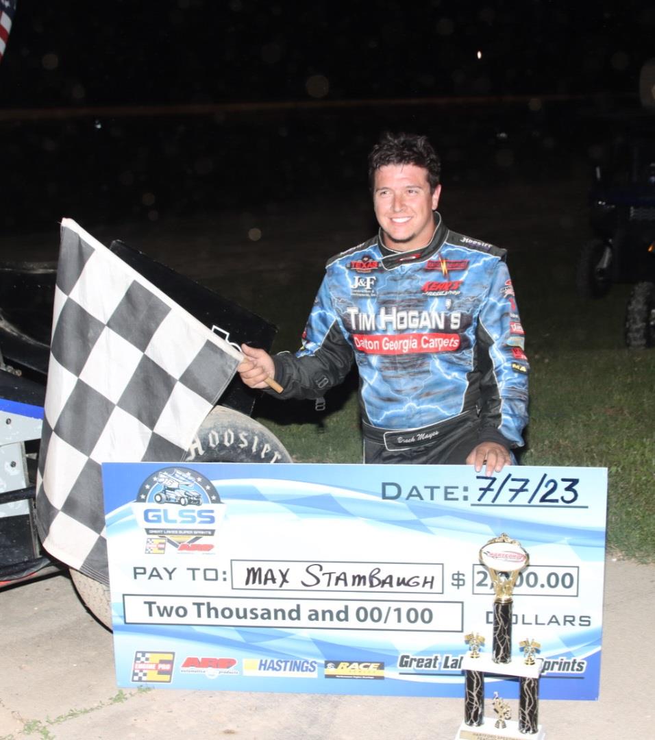 Hartford, MI - Elida Ohio native Max Stambaugh , bags his second feature win of the season tonight at Hartford Speedway! Stambaugh is currently leading both the GLSS and Wolverine region in points. The night was packed with a thrilling event of high speed racing and an amazing turnout in the stands. To start this right, we would like to say thank you to all of the fans, staff, and drivers. We would not of been able to have this night without all of your support!