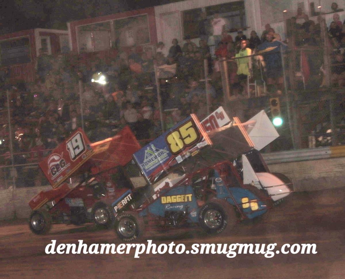 Jett Mann (Goshen, IN) wins the Engler Machine & Tool Heat 1, while Craig Mintz (Gibsonburg, OH) wins the Beacon and Bridge Markets Heat 2 and Max Frank (Williamston, MI) takes home the win in the Jim Coffey & Sons Plumbing and Heating Heat Race 3.